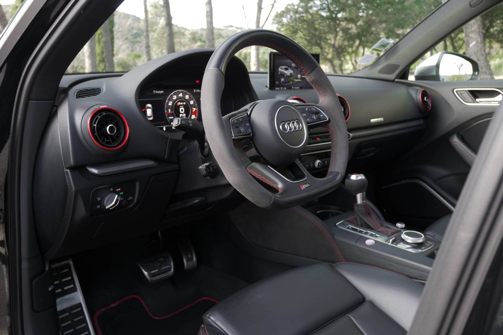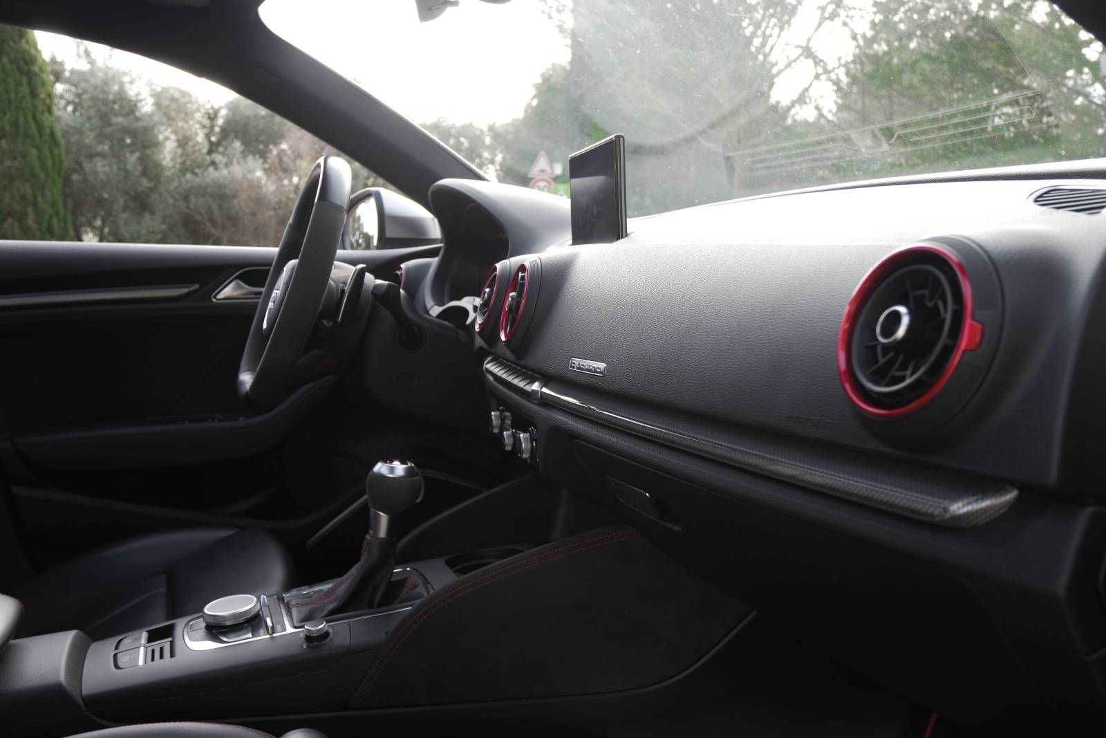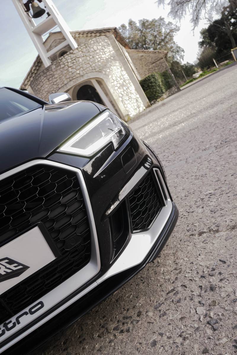 Liste des équipements : - Echappement RS - Toit ouvrant panoramique en verre - Keyless - Sièges avant chauffants - Pack RS ( Alcantara + surpiqure rouge contrastante ) - Sellerie Cuir Nappa Noir avec estampillage RS et surpiqûres diamant rouge Crescendo - Bang & Olufsen Sound system - Audi Matrix LED - Jantes BLADE 19" Bi-ton - Noir panthère ( LY9Z ) - Adaptive cruise control avec Audi pre sense front (avec fonction Stop&Go) - Caméra de recul - Système contrôle de pression des pneus - Rampes de pavillon en aluminium mat - Vitres arrière surteintées (Privacy glass) - Pack Esthétique aluminium mat - Clignotant dynamique - Audi Virtual Cockpit - Châssis sport - Applications décoratives en aluminium brossé - Capteur de pluie - Régulateur de vitesse - Limiteur de vitesse - Capteur de pluie ....